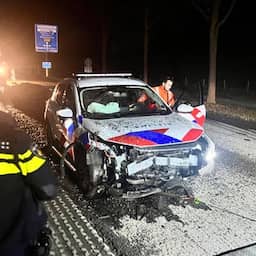 Video | Zwaar beschadigde politieauto weggesleept na botsing met asfaltberg
