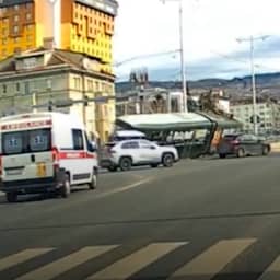 Video | Tram ontspoort en botst tegen halte in Sarajevo