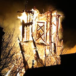 Video | Toren van Vondelkerk stort in tijdens brand in Amsterdam