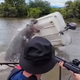 Video | Nijlpaard kiepert boot om tijdens reddingsactie in Zuid-Afrika